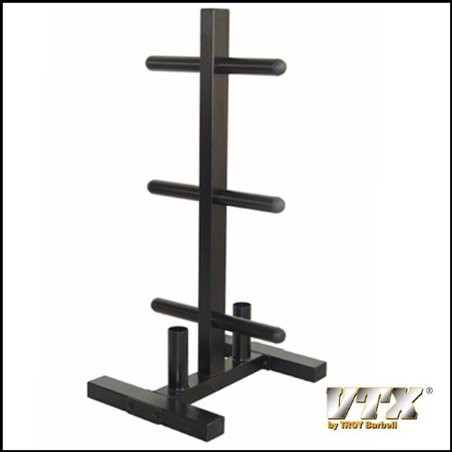 | This Olympic plate tree and bar rack holds all 2 plates and 2 Olympic bars. All weight horns are spaced far enough apart to hold 45lb plates (or bumper plates) Sturdy 12 gauge frame. Made for home or institutional application. |