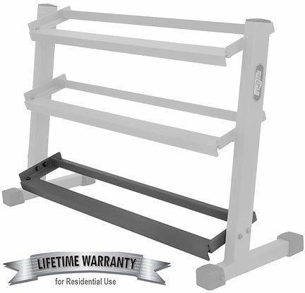 If you have more dumbbells than will work for your current two tier EF-3102, then the EF-3103 attachment is ideal. This simple angled tray bolts securely to the bottom of your existing EF-3102 to add 4 more feet of additional storage for your round or hex dumbbells.